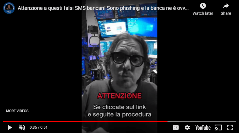 Attenzione a questi falsi sms bancari. Sono phishing e la banca ne è ovviamente estranea.