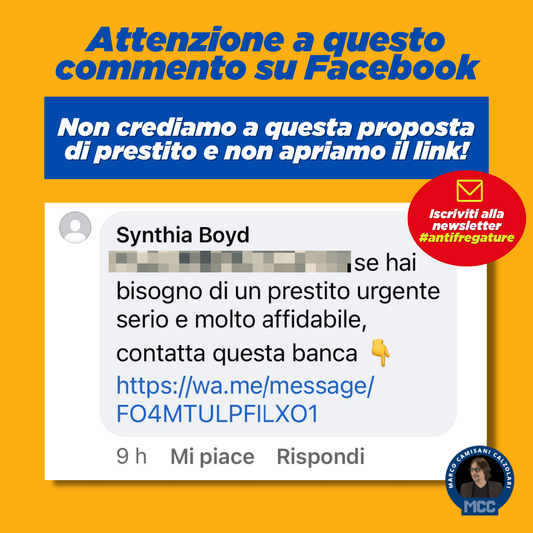 Infatti possiamo notare che nel testo del messaggio ci sono errori di punteggiatura e il link non è quello ufficiale della banca. Non facciamoci fregare.